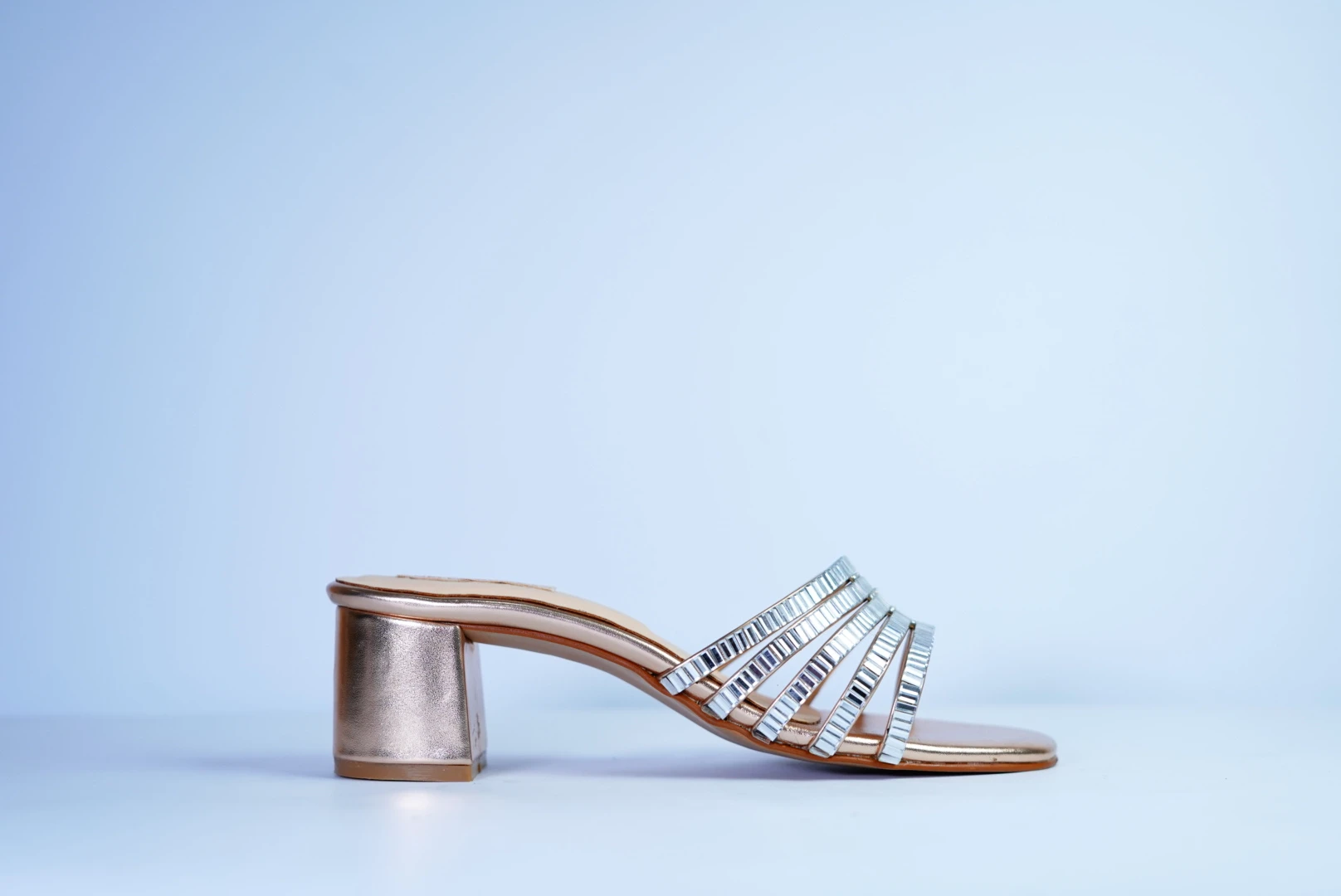 Aurora Heel is adorned with delicate glass detailing that reflects light beautifully.